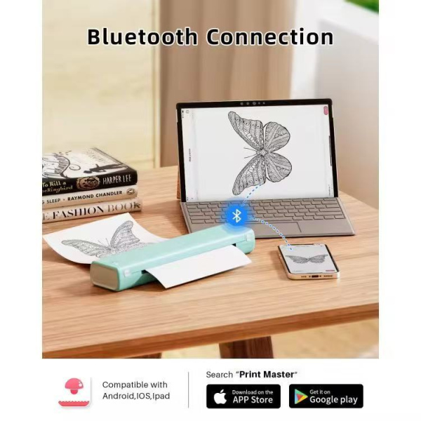 Small handy portable wireless printer for outdoor use with no need for ink.