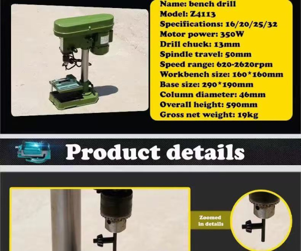Modern electric bench drilling machine for carpentry work and woodwork.