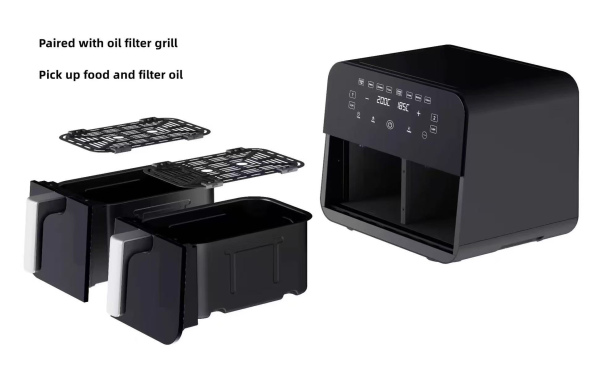 Modern air fryer with single and two pots plus  multiple features and touchscreen technology.