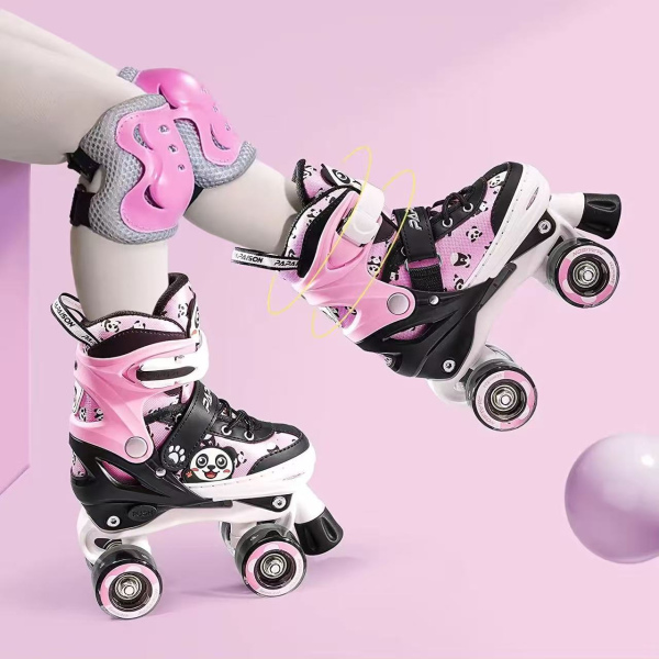 Colorful roller skating shoes for kids aged 6 to 18 with protective gear.