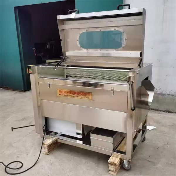 This machine can wash, peel and separate peelings from potatoes and also other items like carrots and ginger.