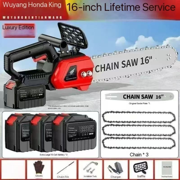 Rechargeable lithium battery-powered chainsaws for personal use around the home or in the farm.